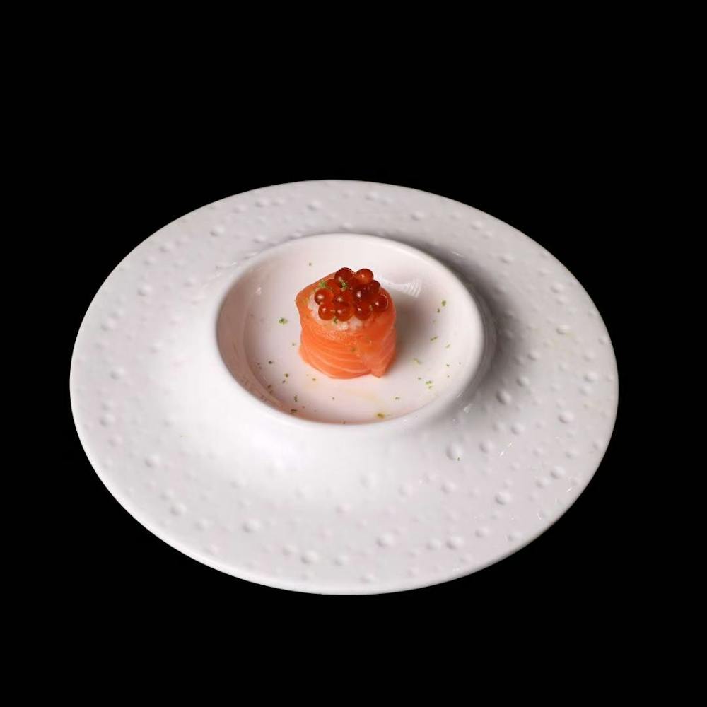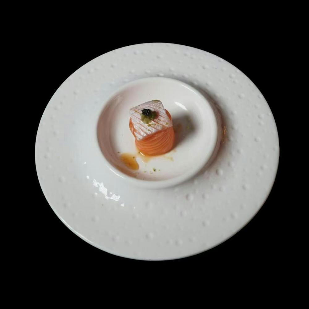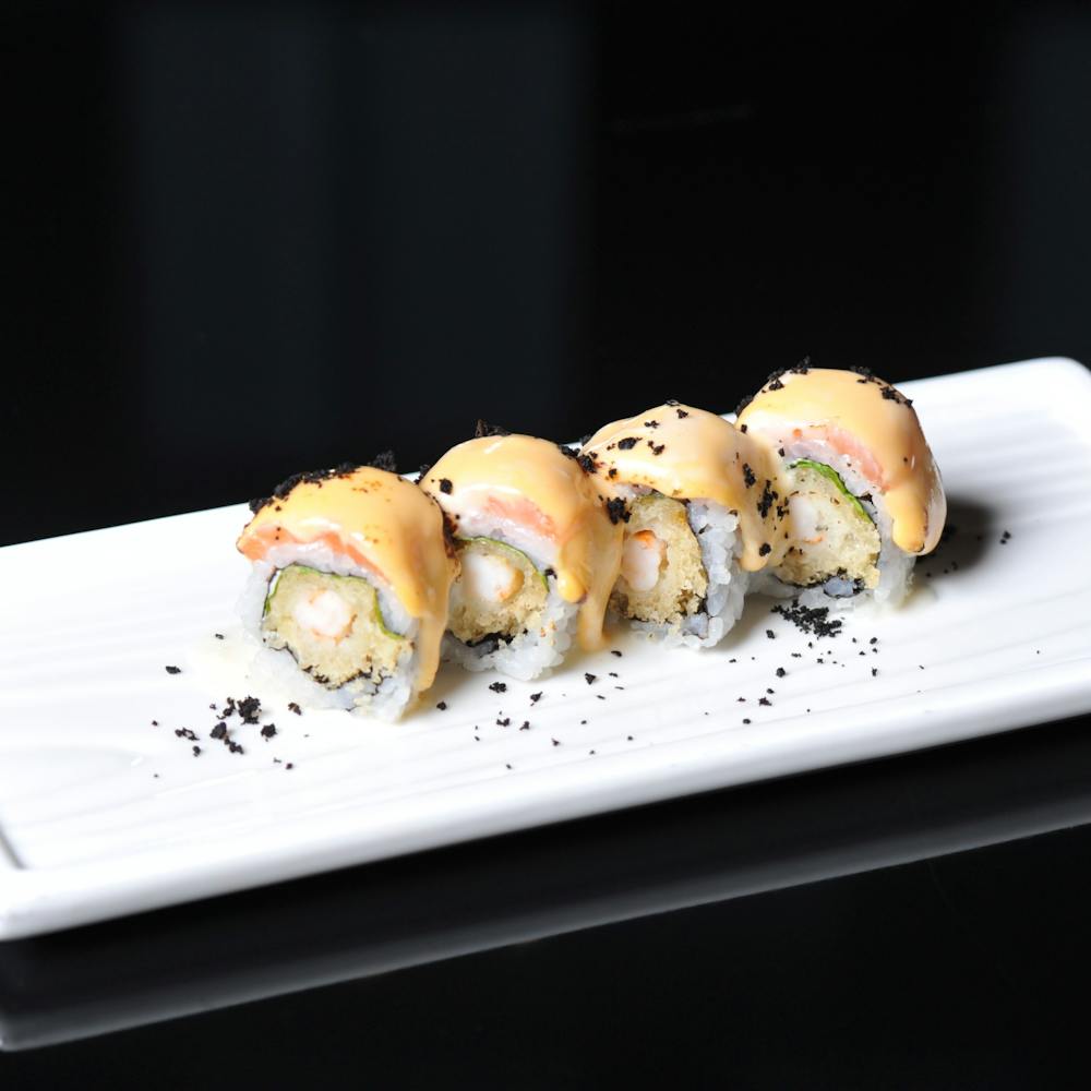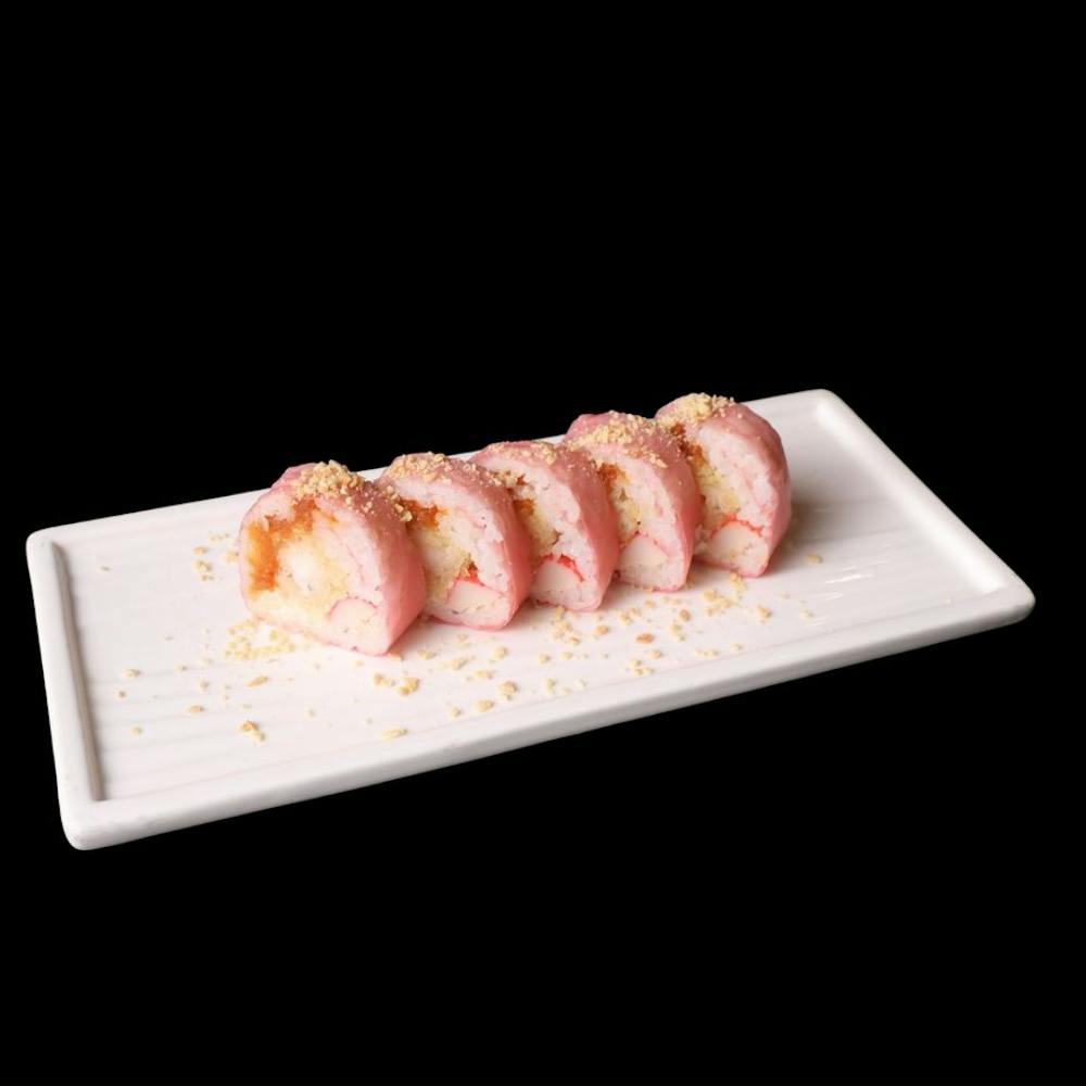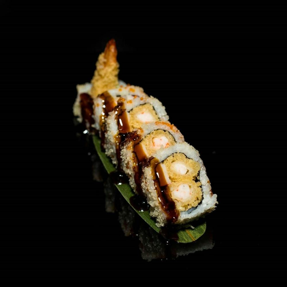 Un connubio di sapori: agrumi del ponzu, la ricchezza del sesamo e la cremosità del goma, con il tocco piccante del wasabi e la dolcezza esotica della frutta della passione.