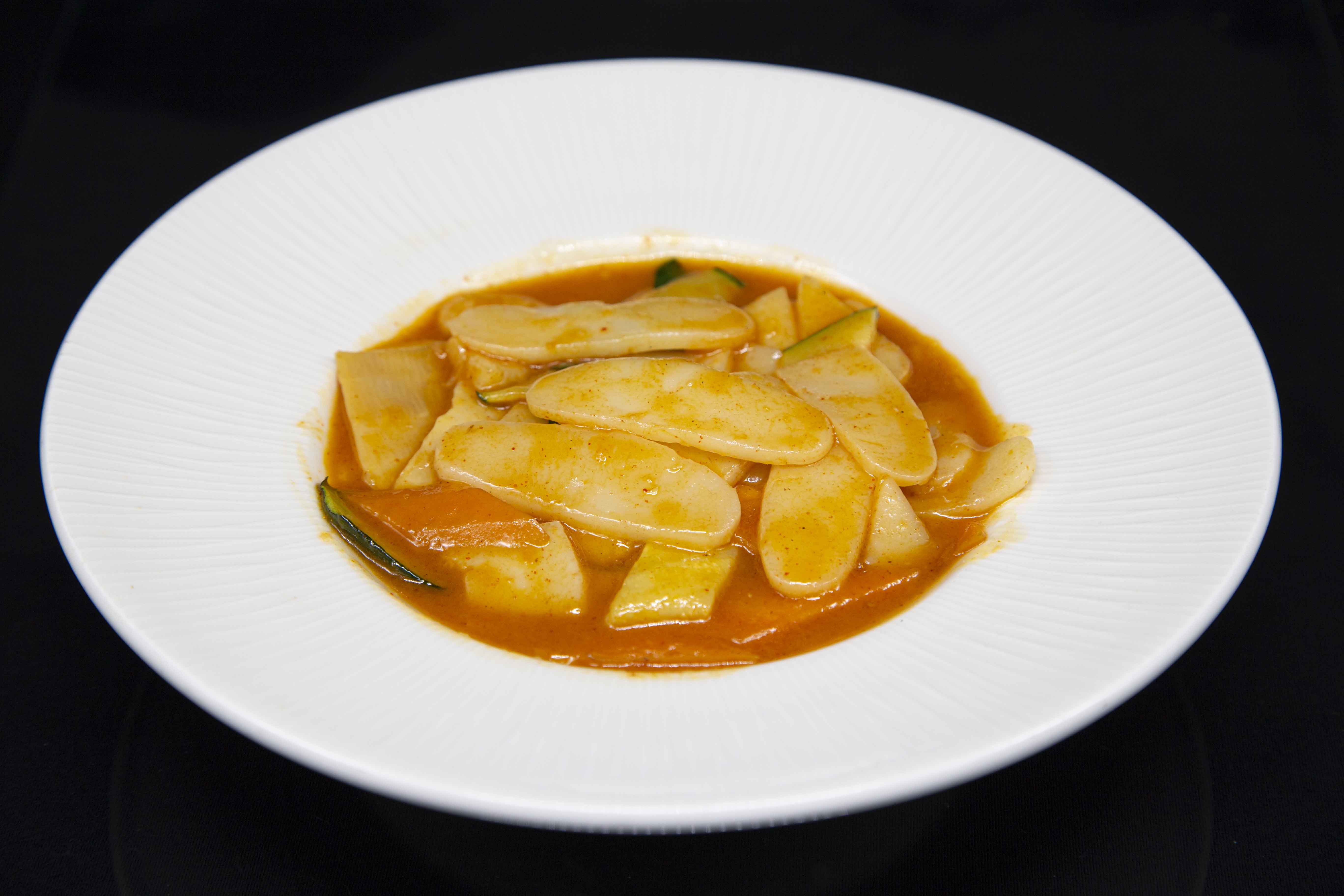 Riso bianco saltato con verdure miste, gamberi al latte di cocco e salsa curry