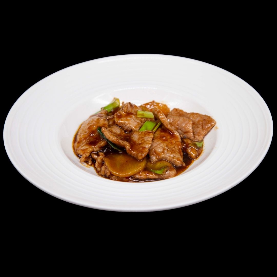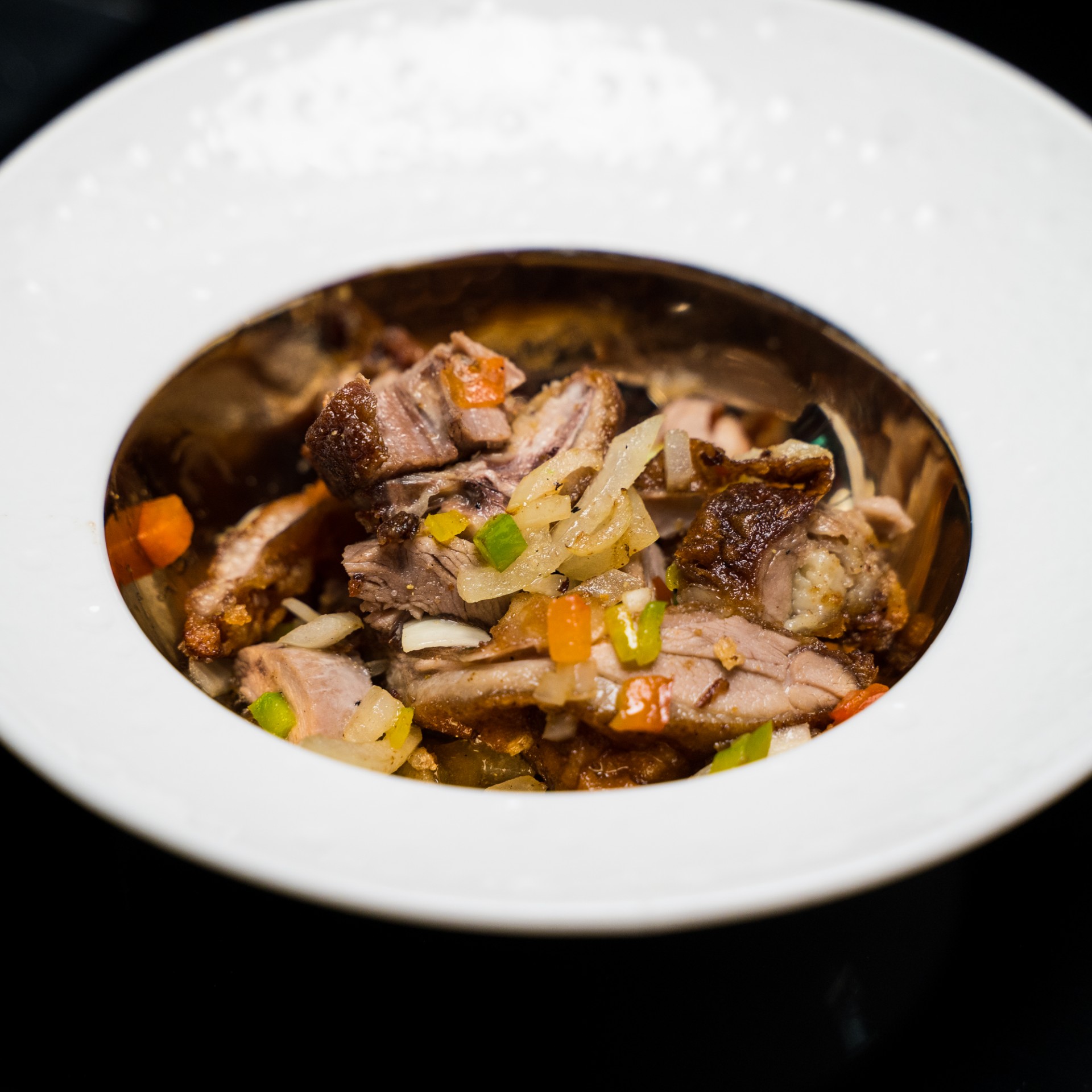 Sfoglia di soia, lonza di maiale, funghi shiitake, cipollotto, verdure