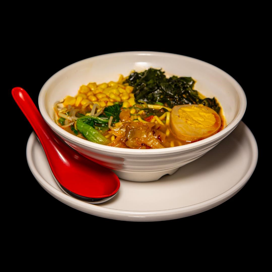 Noodles. brasato di maiale, uovo sodo, verdure miste, cipollotto, naruto con la speciale souce ramen al soy milk