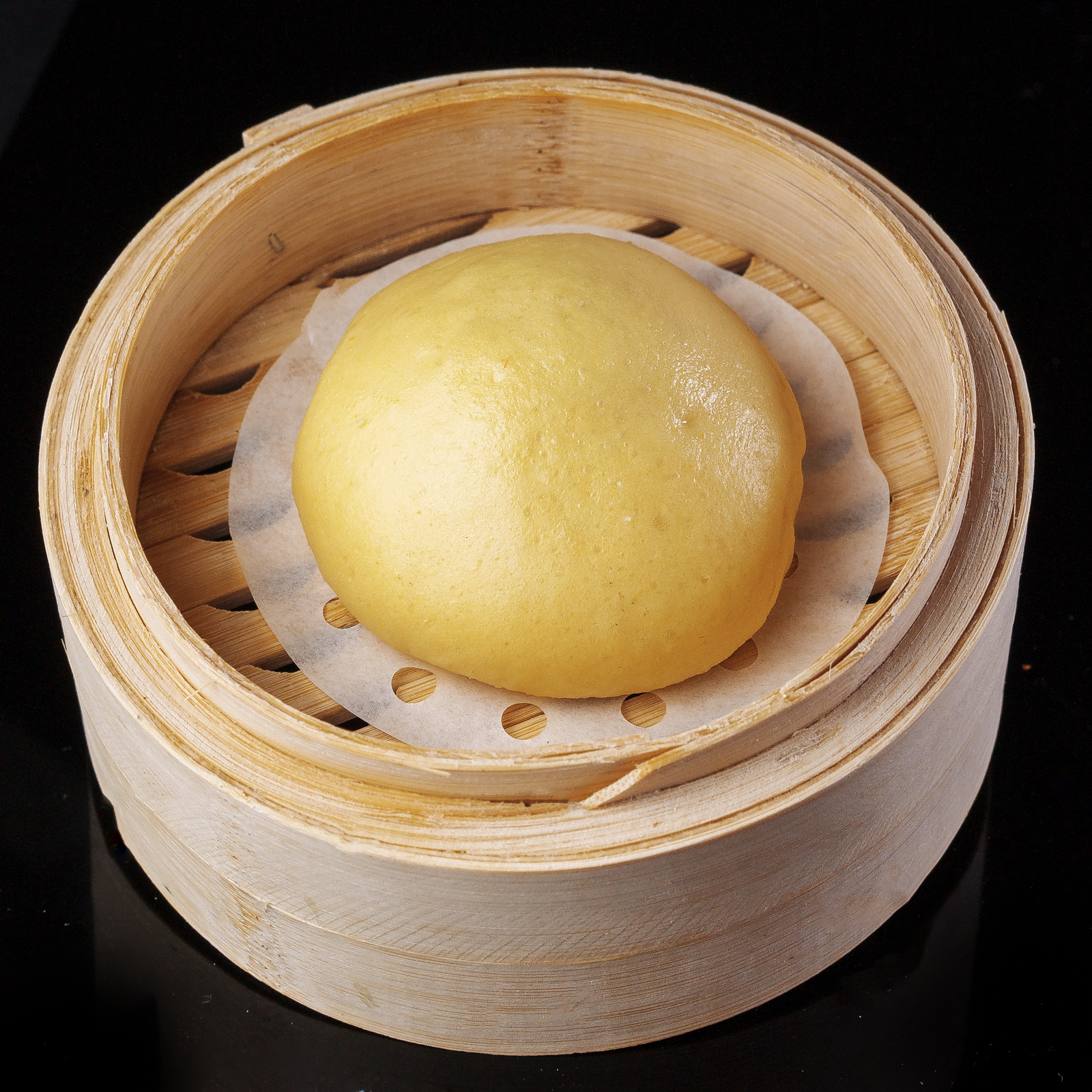 Pane leggermente dolce al vapore, farina 00 e carbone vegetale, ripieno con la crema di tarro