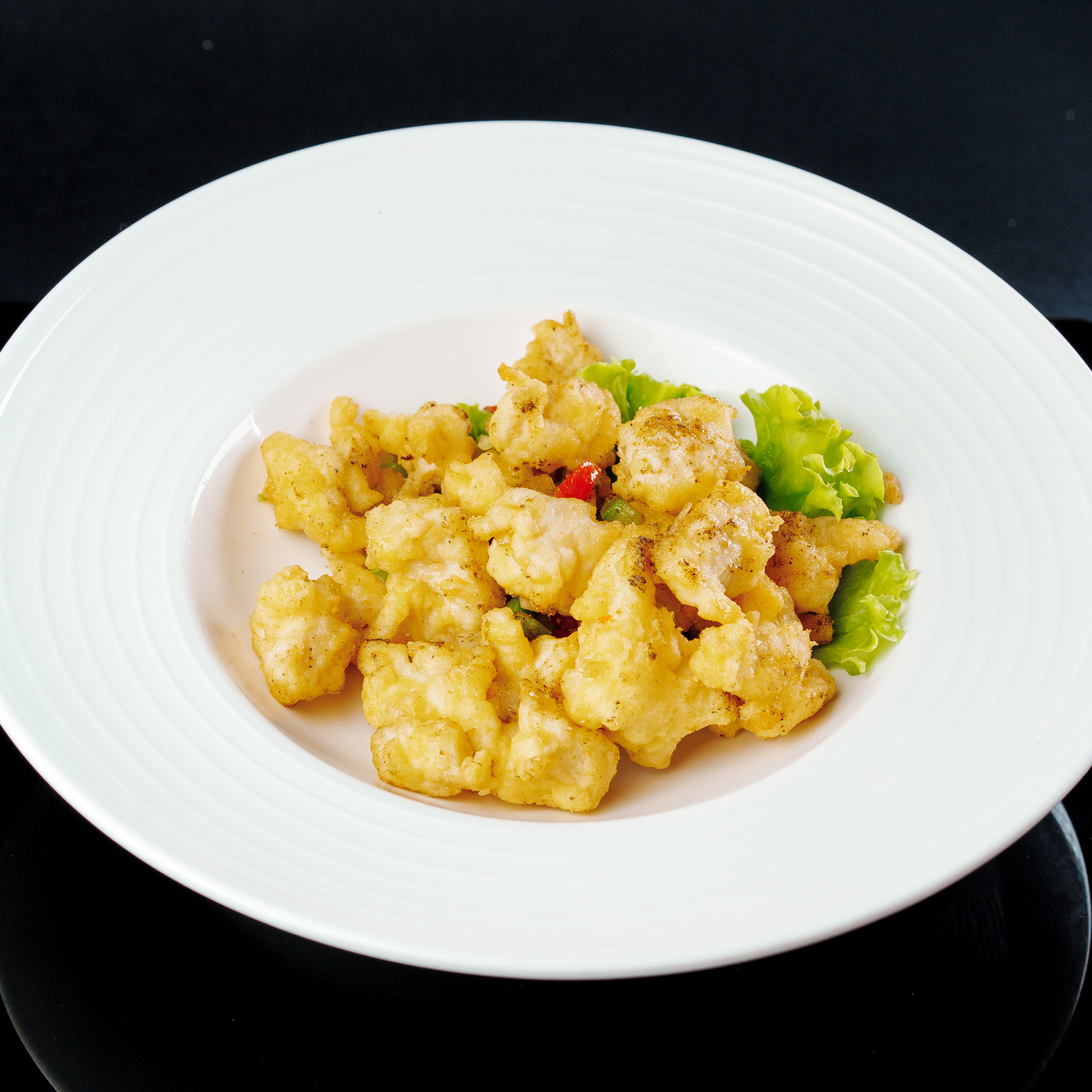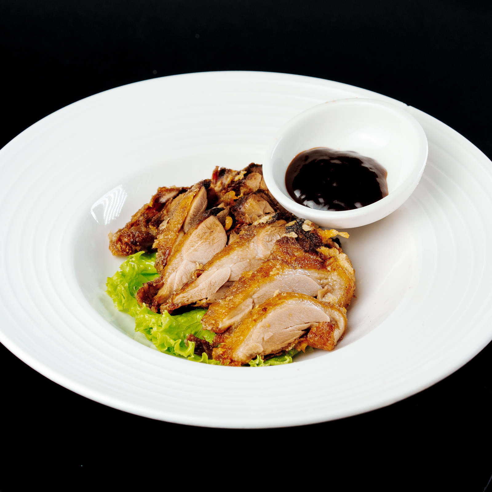 Pane orientale a vapore ripieno di straccetti di pollo fritto, salsa "Caesar Salad", salsa "Teriyaki", onin cryspy