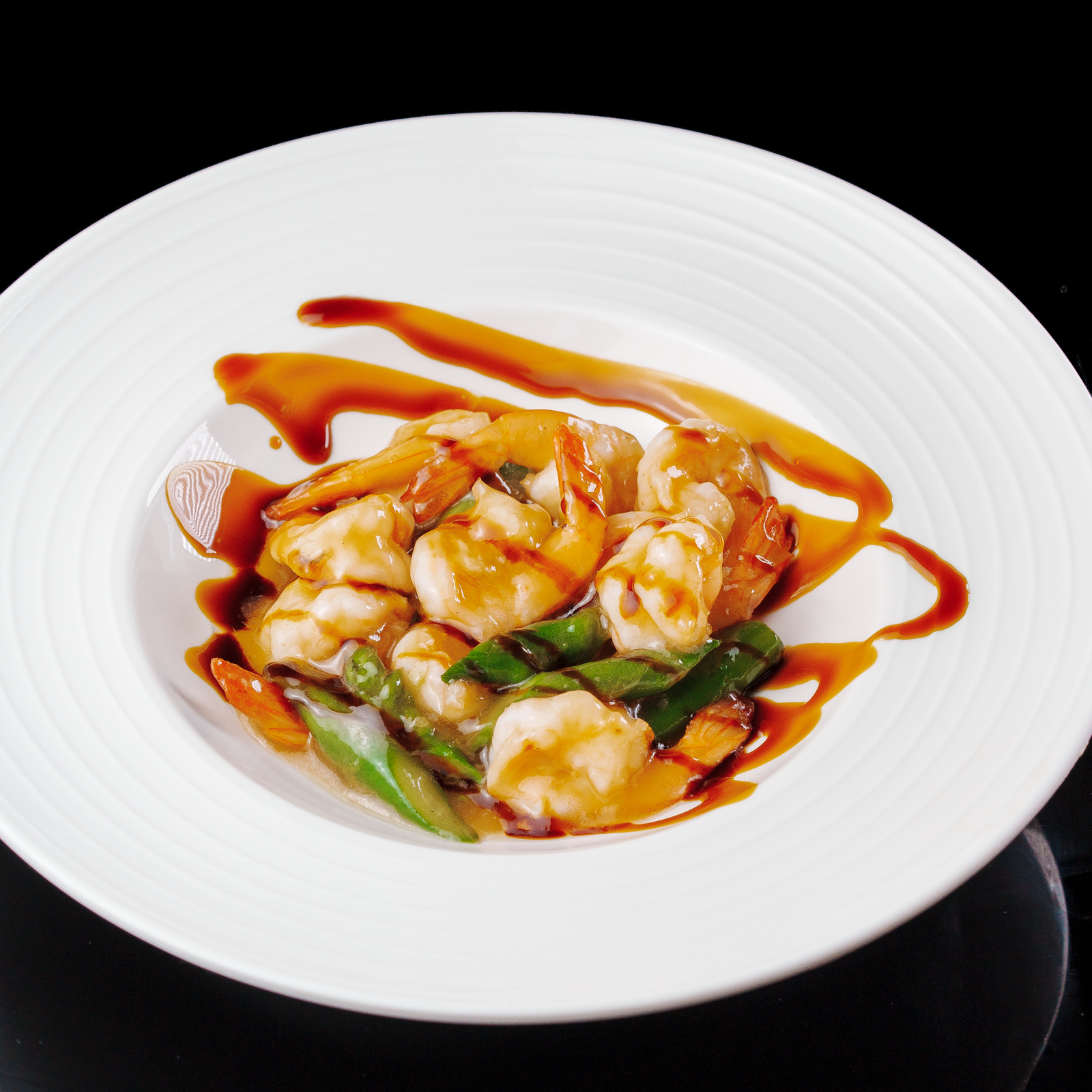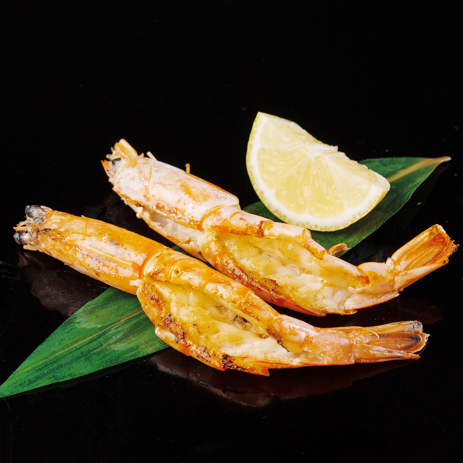 Spiedini di gamberi grigliati con salsa teriyaki, sesamo. questo piatto puo essere ordinato anche dalle persone celiaci specificando senza salsa teriyaki