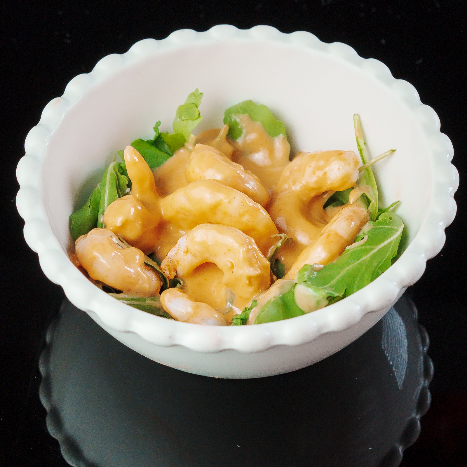 Gamberetti, salsa rosa, rucola. GLUTEN FREE. Specificare nell'ordine se si è celiaci.