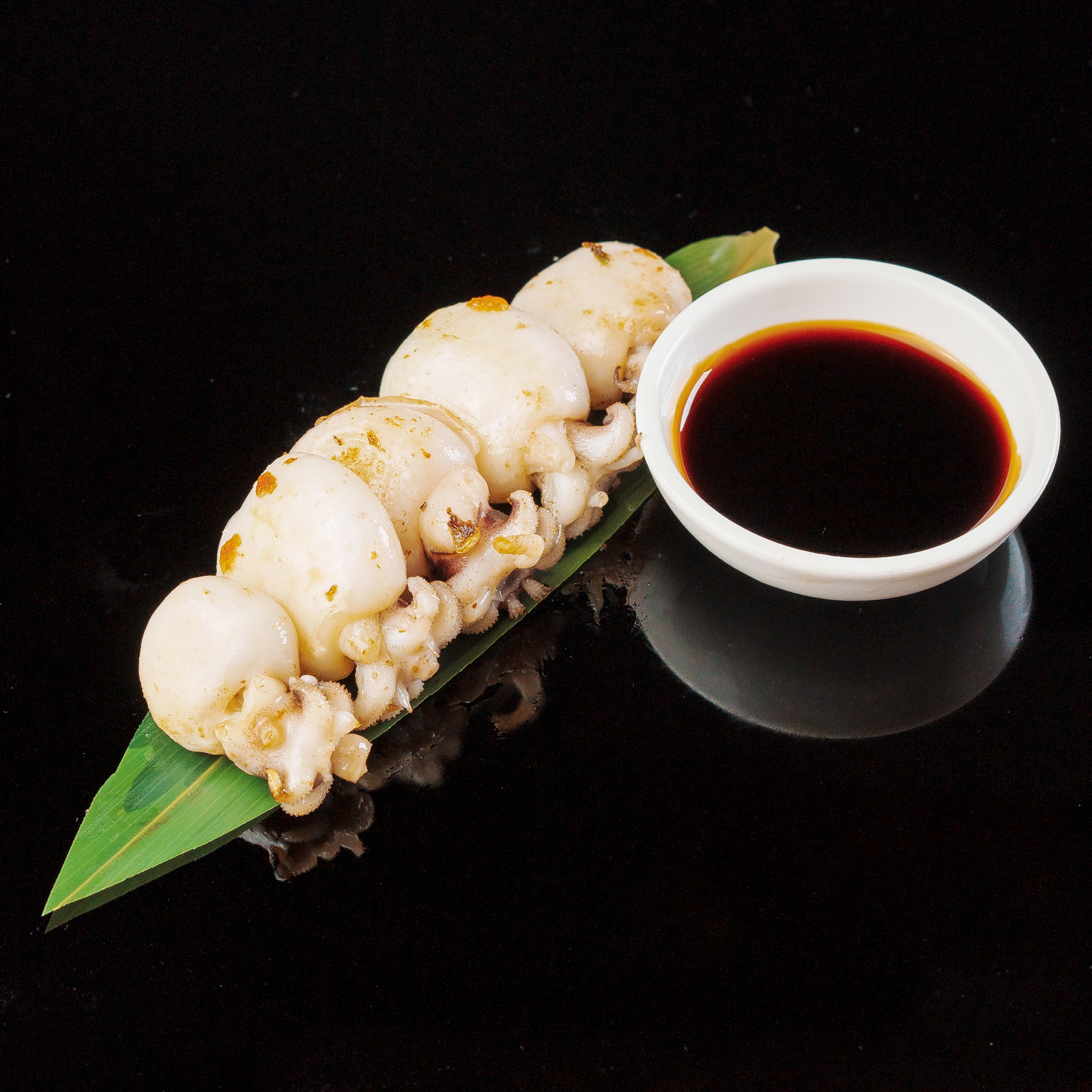 tentacoli di polipo preparato e amalgamato con salsa giapponese, preparato e grigliato sulla pistra giapponese