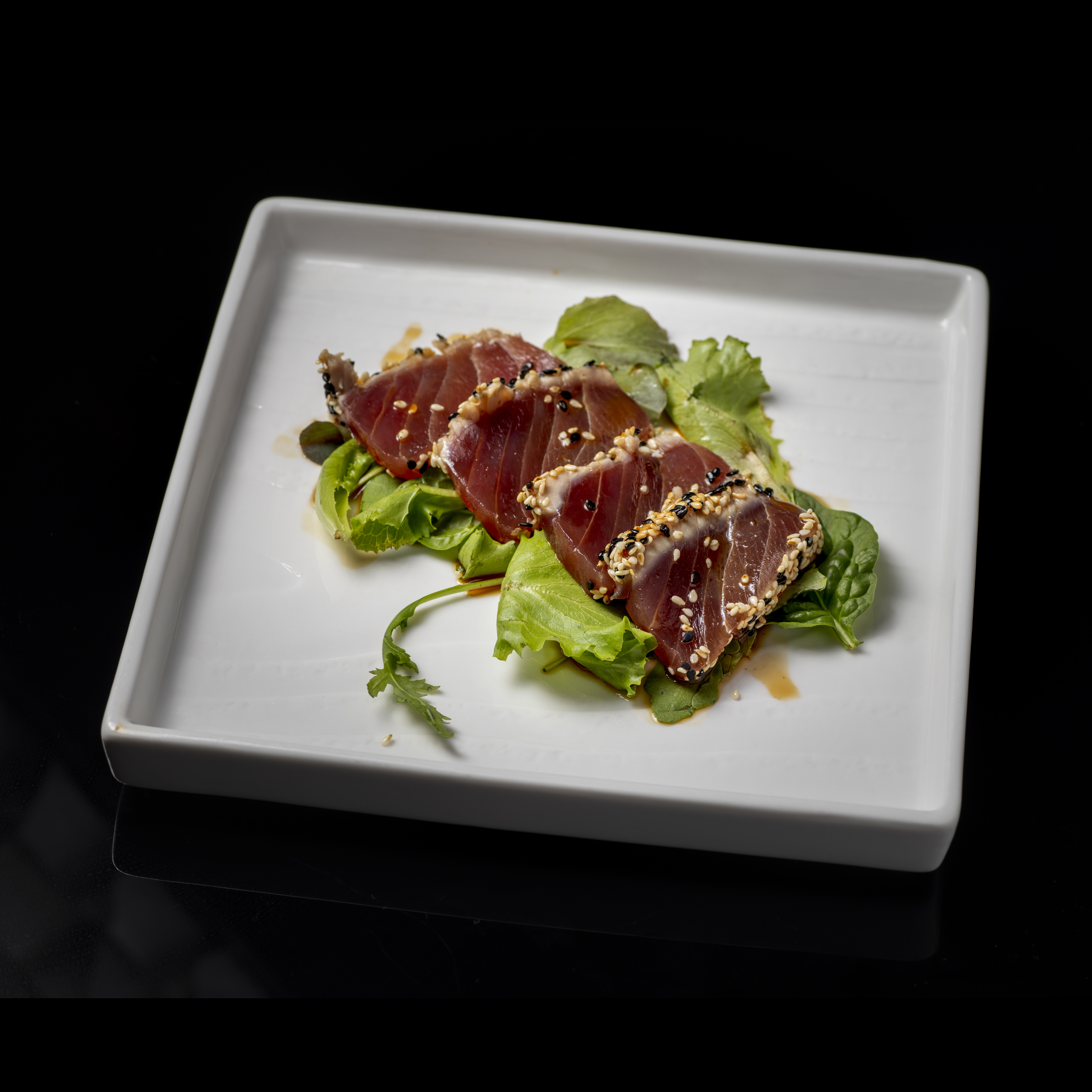 Tonno scottato con sesamo, salsa tataki. GLUTEN FREE. Specificare nell'ordine se si è celiaci.