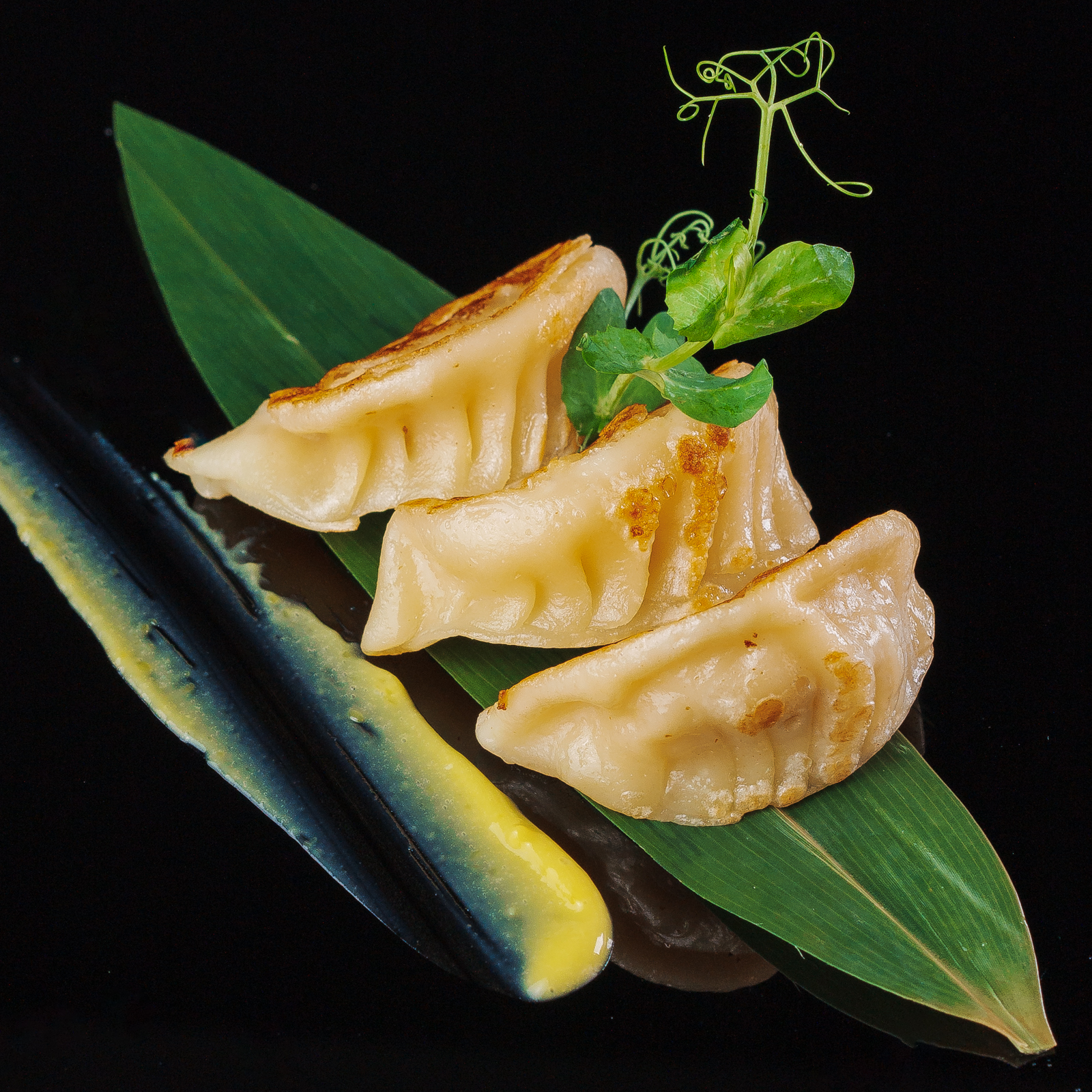 Ravioli con ripieno di merluzzo, zenzero, cipollotto