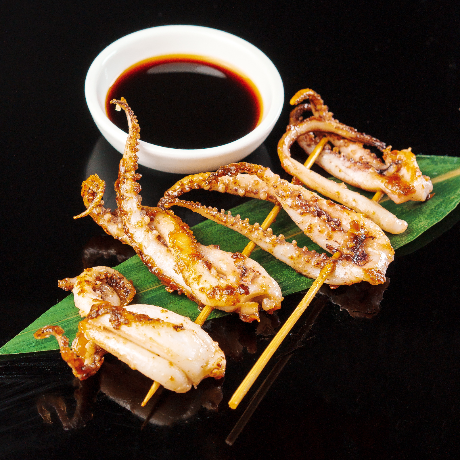 seppia grigliata servito con salsa teriyaki. questo piatto pupo essere ordinato anche dalle persone celiaci specificando senza salsa teriyaki