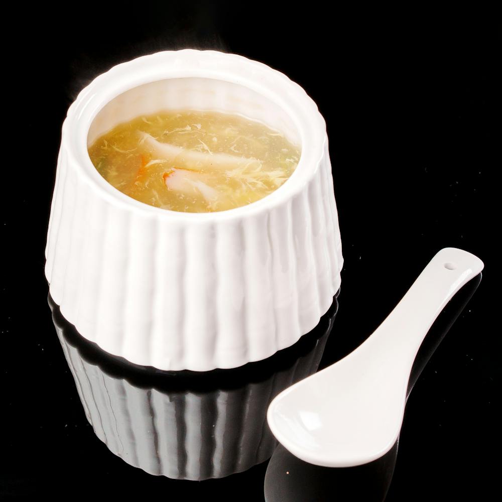 Zuppa con asparagi, surimi e uova