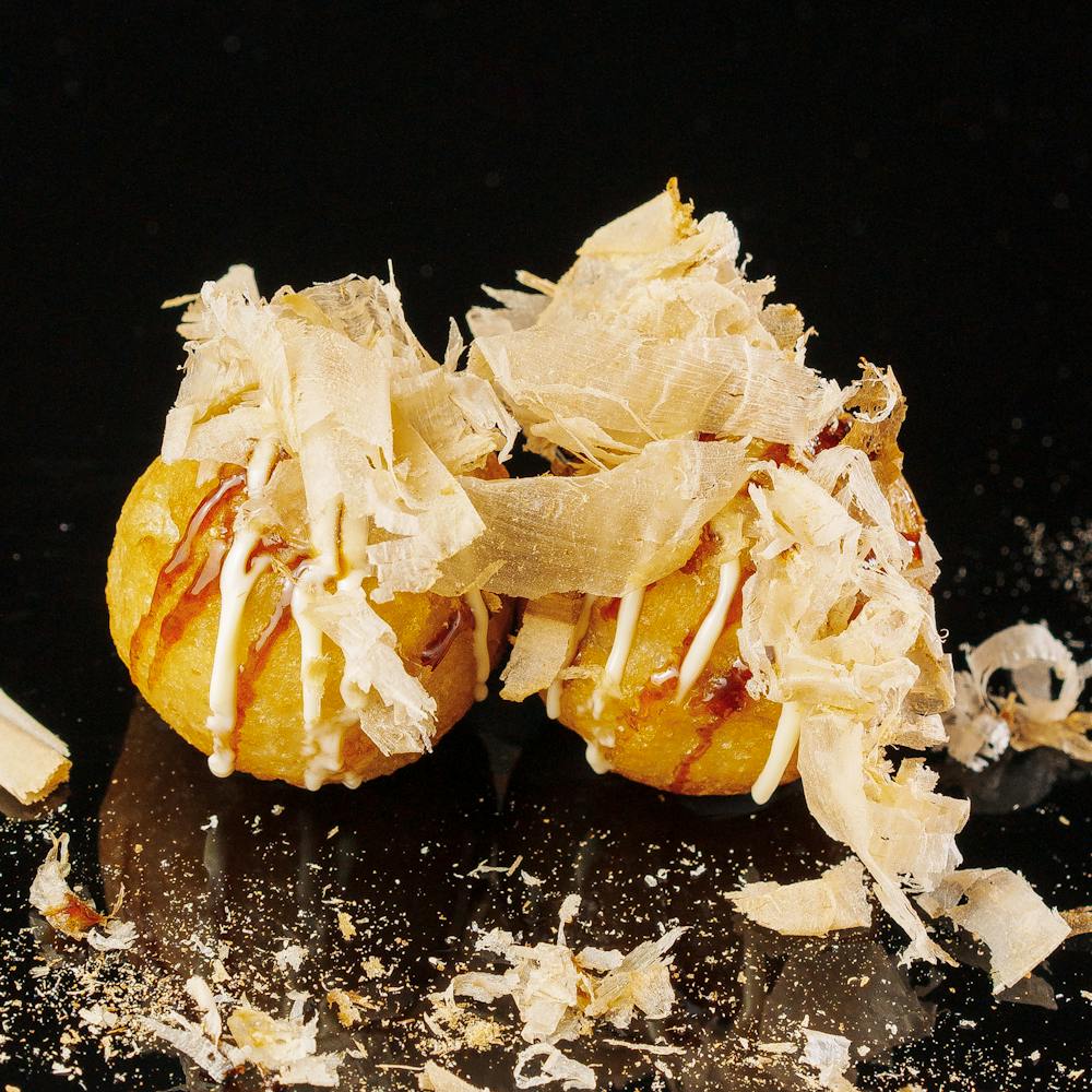 polpette di polpo, katsuobush, sauce maio kempie, teriyaki