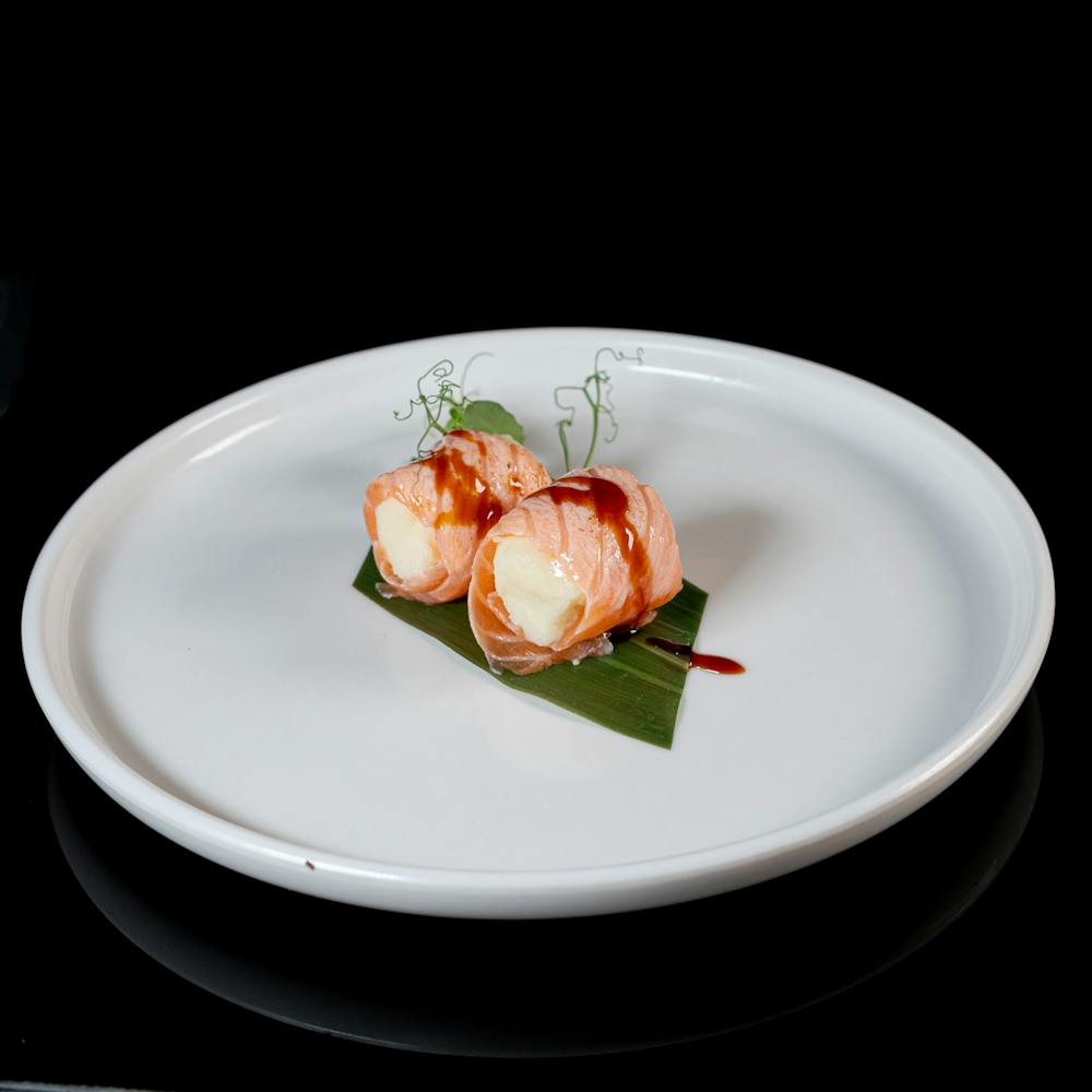 Salmone scottato, spicy maionese, crema latte e teriyaki