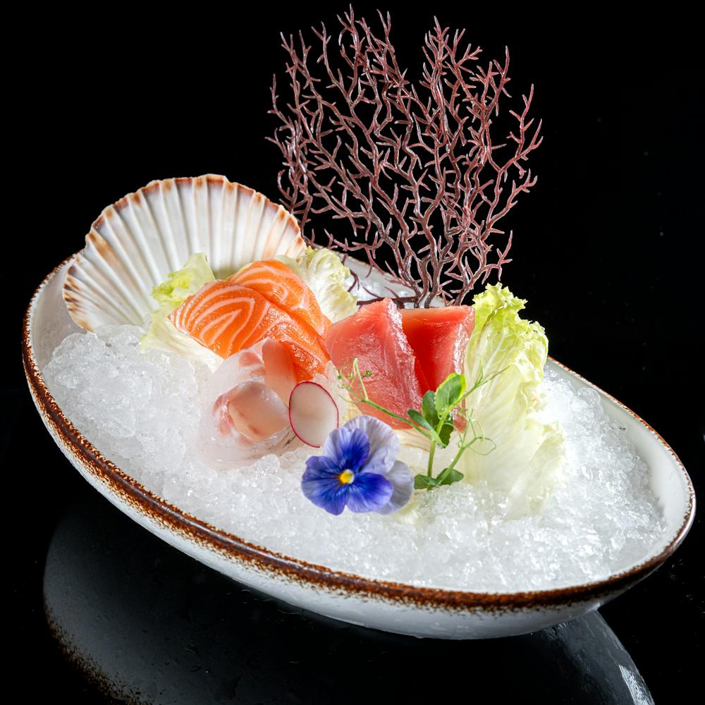 Carpaccio di salmone, branzino, tonno, salsa ponzu, sesamo
