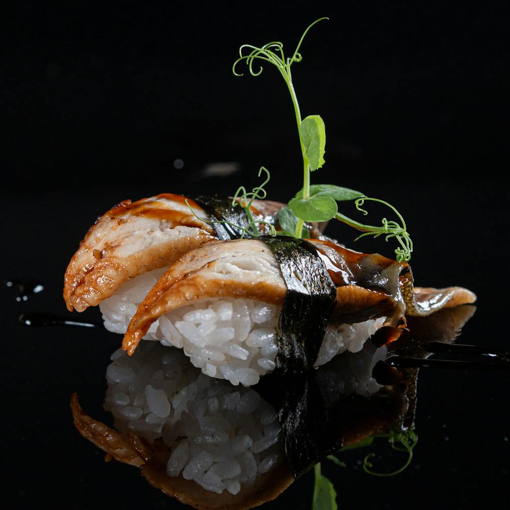 bocconcino di riso, Polipo, teriyaki. questo piatto puo essere oridnato anche dalle persone celiaci specificando nella notazione senza teriyaki.