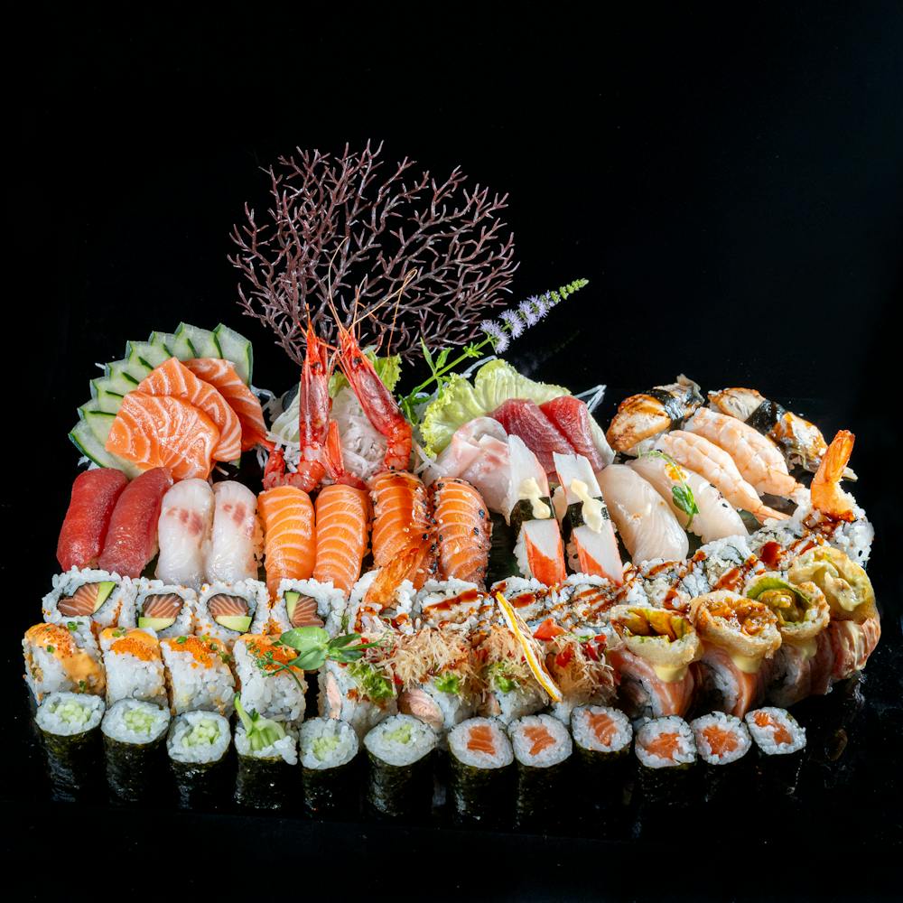 Scegli tra 60, 85 o 100 pezzi di Roll e Sushi speciali.