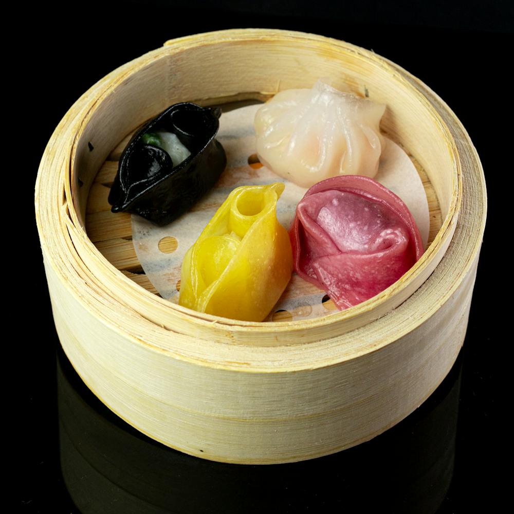 Sfoglia di soia, lonza di maiale, funghi shiitake, cipollotto, verdure